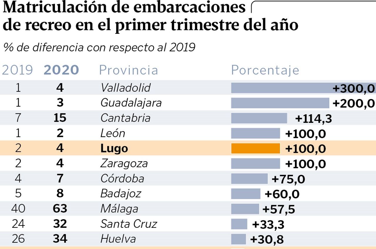 Eso por esloras. Por tipos de embarcaciones solo dos se salvan de los número rojos: las motos de agua y los veleros. De estos dos modelos se han matriculado más unidades que el año pasado. La relación de motos acuáticas se ha incrementado un 26,9 %, mientras que las altas de veleros suben un 3,7 %. Ahora bien, no es un dato tan bueno como podría parecer, puesto que, según hace ver la patronal de las empresas náuticas, se aprecia un frenazo en el crecimiento y así, aunque se cuentan más altas, aumentan «en menor medida de lo que lo venían haciendo hasta febrero».